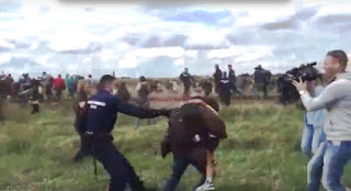 seu caminho, fazendo-os cair. O cinegrafista foi Petra Laszlo. Ela trabalhava para o Canal Nemzeti Televízió, ou N1, uma operação de notícias fundada em 2012, de
